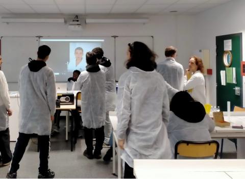 Nos remerciements chaleureux à — Oyut, Éloïse, Véronique, Clara et Jessica — pour leur énergie communicative et la qualité de leurs échanges avec les élèves. Cette initiative a permis de démystifier les laboratoires et les sciences auprès d’un public peu familier de ces domaines. Qui sait, peut-être que de nouvelles vocations scientifiques ont été inspirées !